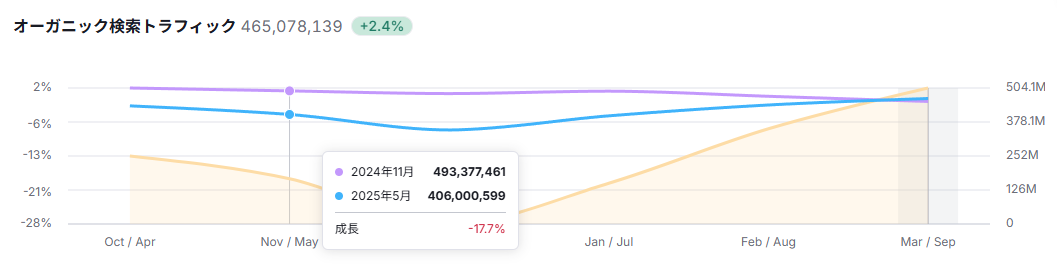 競合サイトが流入を獲得しているキーワードや、逆に取りこぼしている領域を分析できます。これにより「自社が勝てる領域」や「競合よりも優れた提案ができる分野」を把握でき、差別化戦略に直結します。
